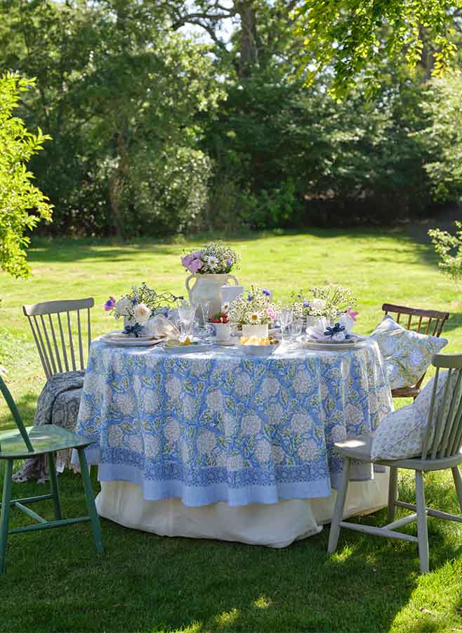 - Produkt: Tablecloth Dahlia Blue & Yellow Rund Ø220 cm