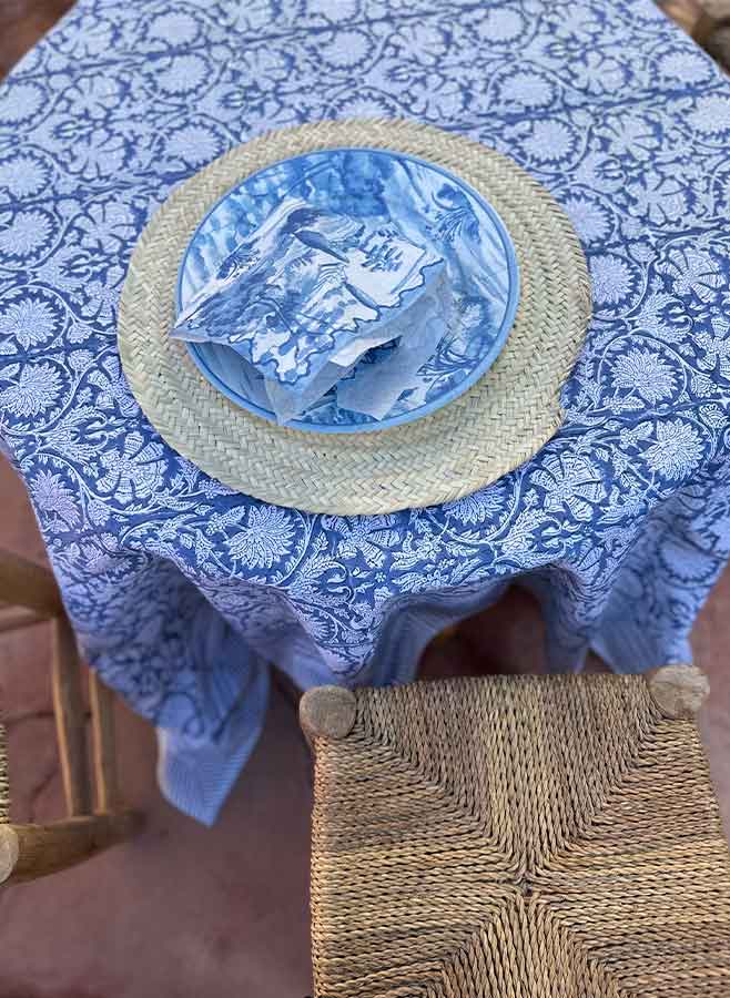 Duken pryds av det ikoniska Paradise-mönstret i den vackra nyansen Cornflower Blue, som ger en fräsch men samtidigt elegant känsla till dukningen. Färgen harmonierar fint med både neutralt porslin och mer färgstarka detaljer, vilket gör den lätt att matcha till olika stilar – från klassisk och lantlig till modern och bohemisk.