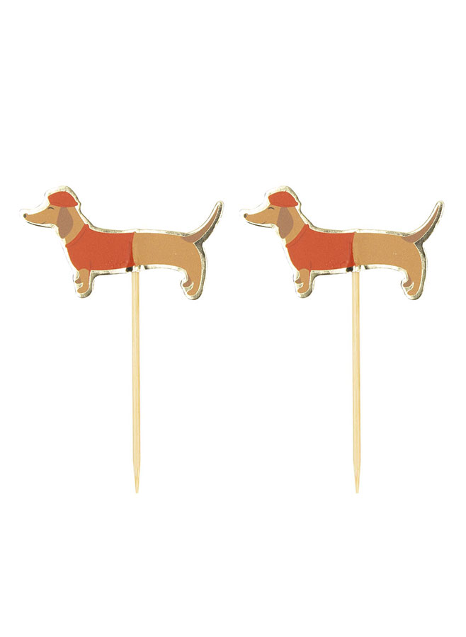 Gör din dukning eller drinkservering mer stilfull och lekfull med våra cocktailpinnar med taxar i röd basker. Ett litet men minnesvärt tillskott som dina gäster kommer att älska!