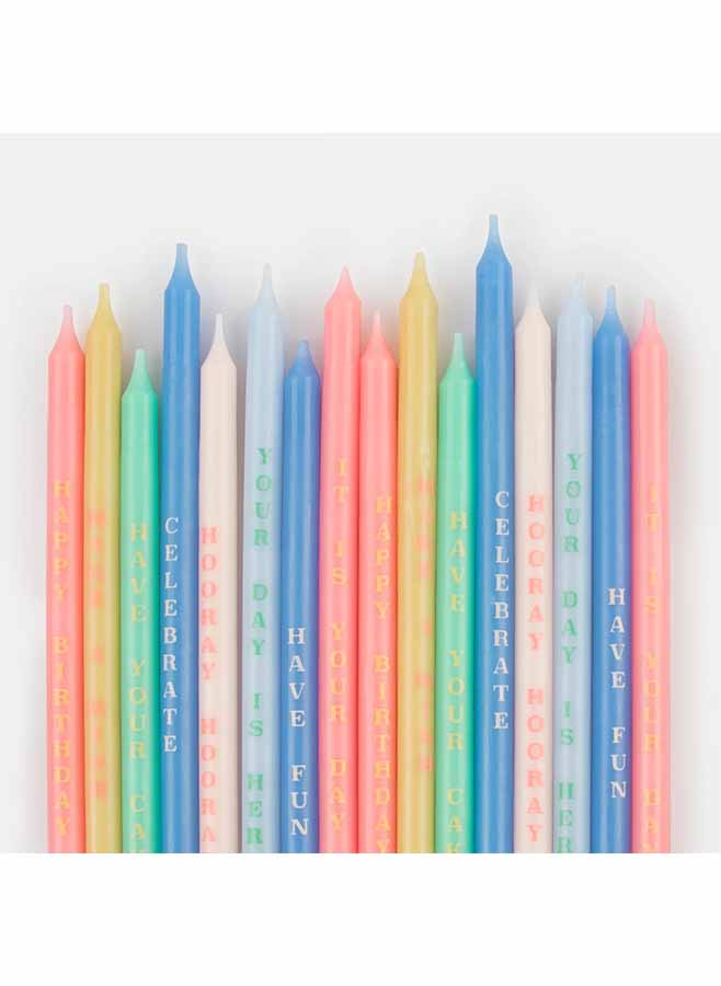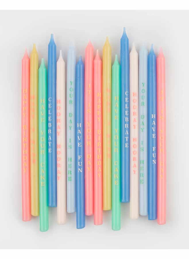 De här ljusen kommer inte bara att ge färg till din födelsedagstårta eller stora muffins, utan de har också roliga fraser för att glädja den speciella födelsedagspojken eller flickan också. Ett super sätt att skapa födelsedagsstämning.
