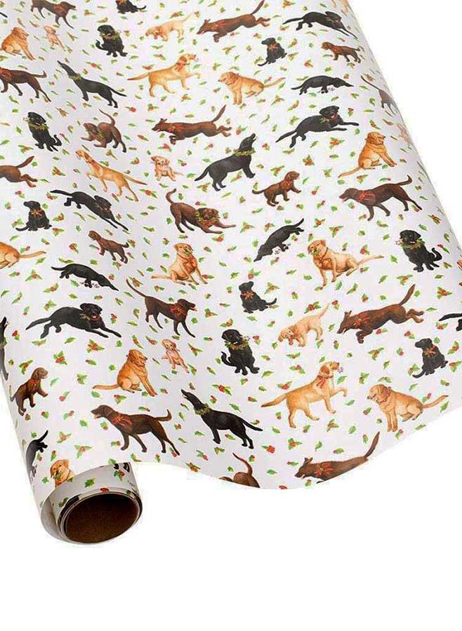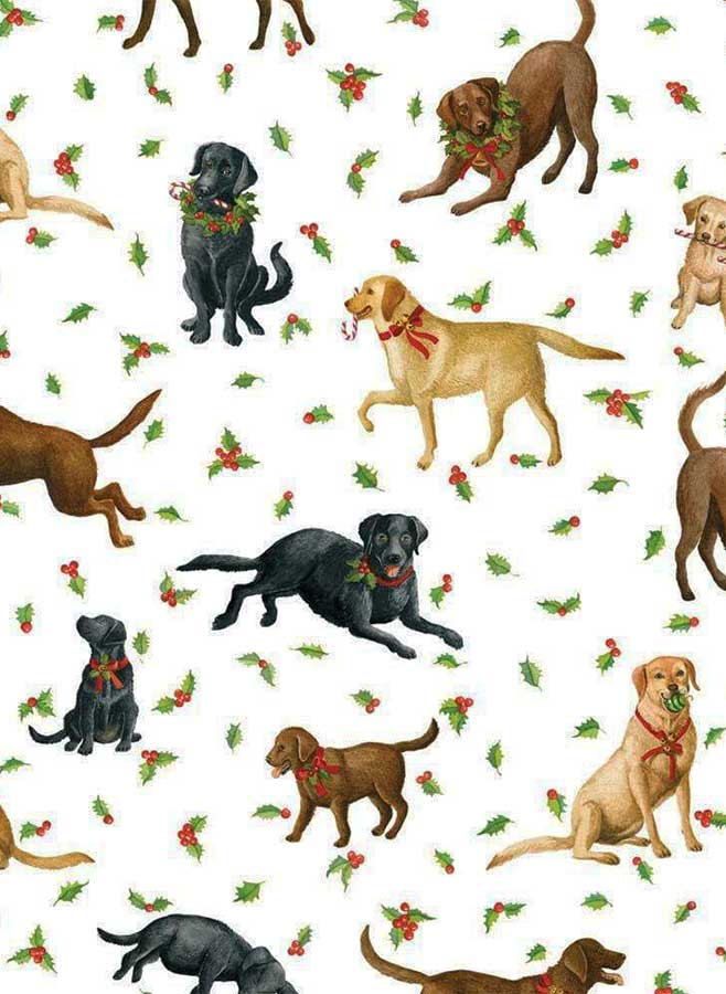 Caspari Julklappspapper – Lekfulla Hundar med Järnek och Bär