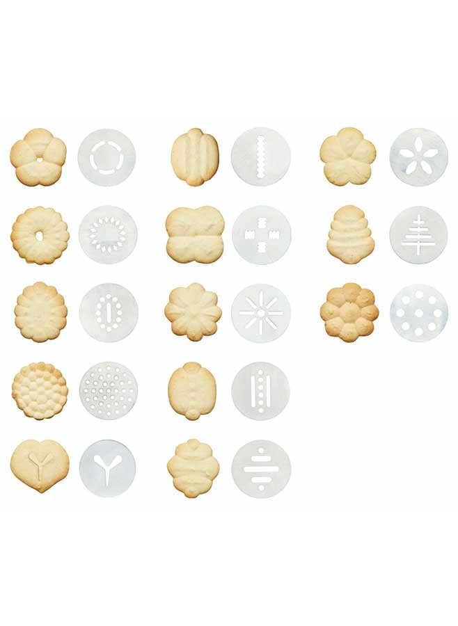 Setet innehåller 22 delar med 8 olika spritmunstycken och 13 kakformar som ger stor variation i både form och design. Du kan enkelt skapa dekorativa tårtor, spritsade kakor och fantasifulla bakverk för alla tillfällen som jul, födelsedagar och fest.