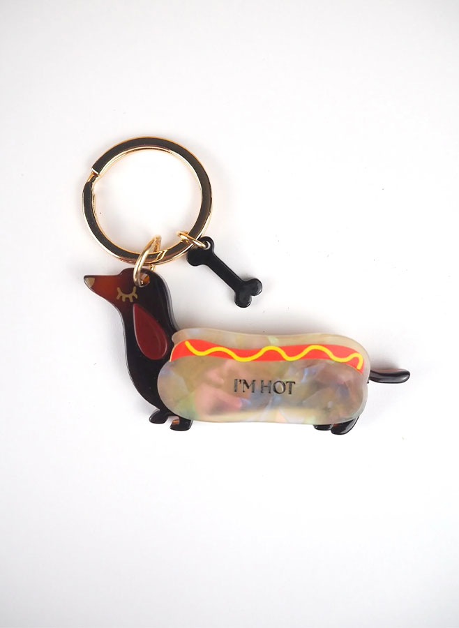Ge dina nycklar en lekfull och unik detalj med I’m Hot Keychain, en charmig nyckelring med en tax (dachshund) i klassiskt korvbröd-motiv. En humoristisk och trendig accessoar som kombinerar lekfull design med praktisk funktion.