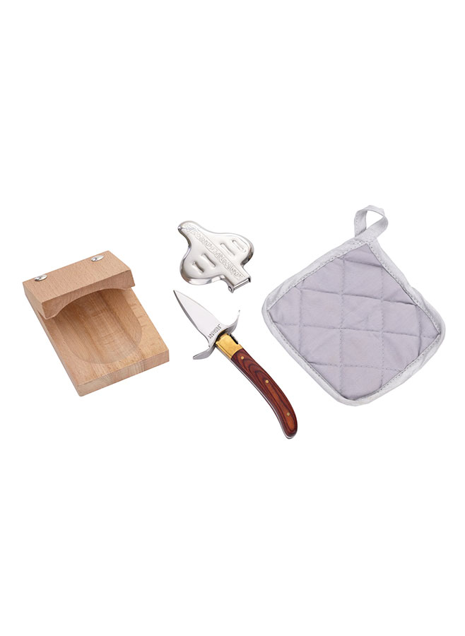 Den skarpa kniven är tillverkad i högkvalitativt rostfritt stål och har ett ergonomiskt handtag som ger perfekt grepp. Tillbehören är utformade för att underlätta hela processen – från öppning till servering – och förhöjer din ostronupplevelse.