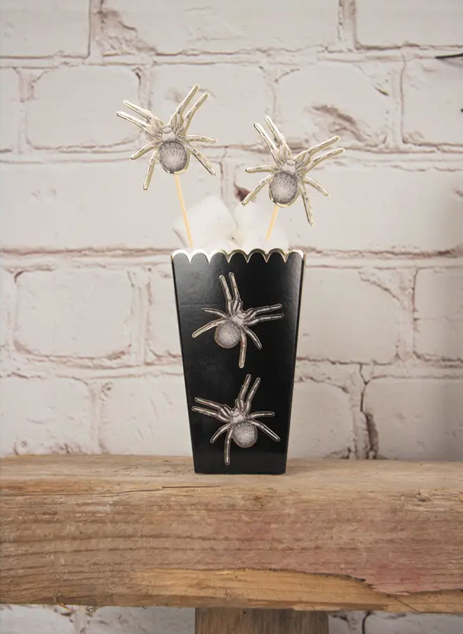 Eleganta Cocktailpinnar med Halloweenmotiv – Spindlar med Gulddetaljer