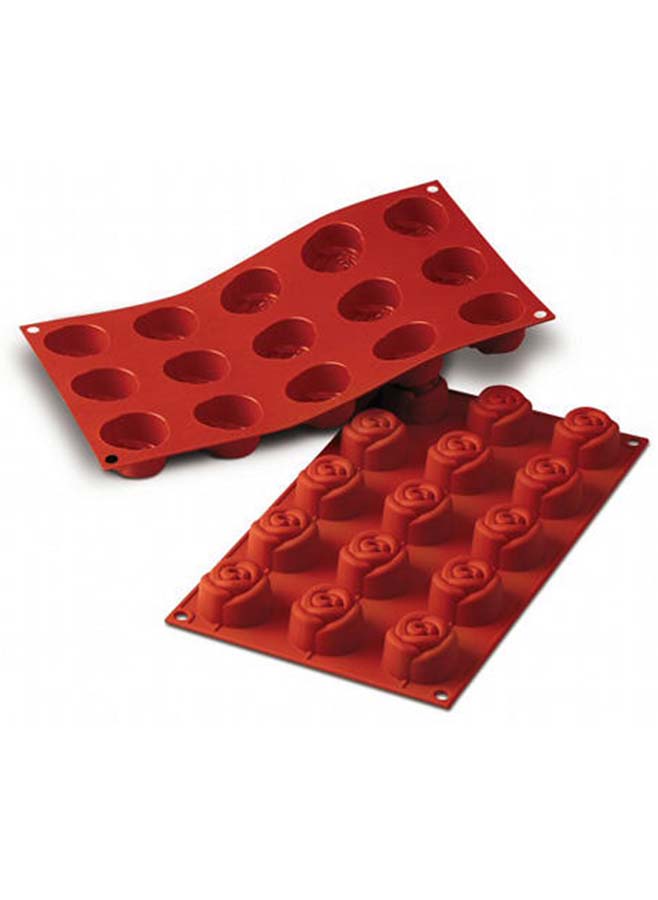 Silikomarts hållbara form med små rosor är av mjukt, flexibelt silikon som kan återanvändas flera gånger om och passar perfekt när du ska baka små minimuffins, gele och desserter. Den kan även användas till glass, parfait och mjuka kakor. Formen är enkel att dra av från både bakverk och glass. Formen drar varken åt sig naturliga färger, dofter eller smaker och är värmetålig i upp till 230 grader och kan frysas med vatten eller desserter ner till -60 grader.