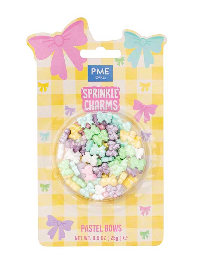 Ge dina bakverk ett lekfullt och elegant uttryck med PME Cake Pastel Bows Sprinkle Charms. Dessa extra söta, små strösseldekorationer i form av rosetter är perfekta för att snabbt skapa ett personligt och festligt resultat – särskilt till påskens bakning.